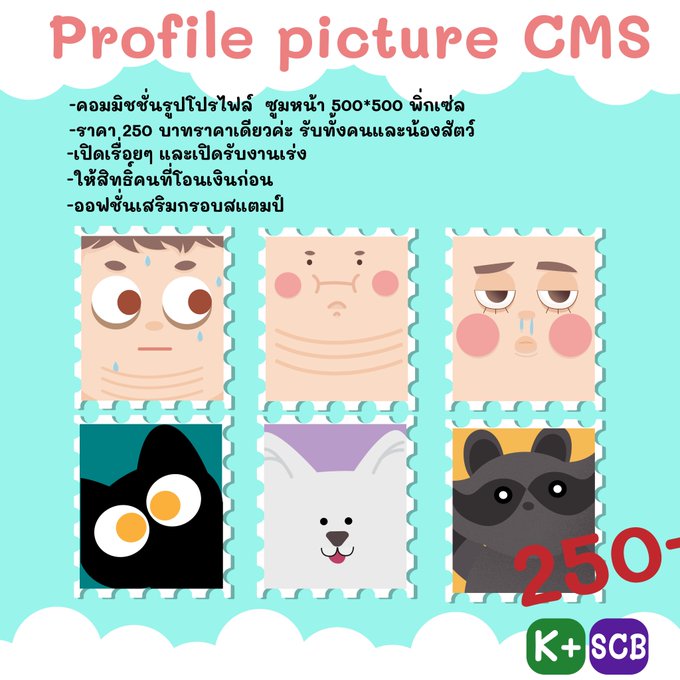 เค้ามาเปิดรับคอมมิชชั่นรูปโปรไฟล์ค่ะ รับทั้งออริและแฟนอาร์ต A ซูมหน้า250บาท B สเกลหัวราคา300บาท ให้สิทธิ์คนที่โอนเงินก่อนค่ะ ระยะเวลาประมาณ1-2วันรับงานเร่งและต้องการการบรีฟอย่างละเอียด เพราะไม่มีแก้งาน *รับแค่งานส่วนตัวไม่รับเชิงพาณิชย์ *สอบถามเพิ่มเติมเด็มมาเลยจ้า #commissionTH