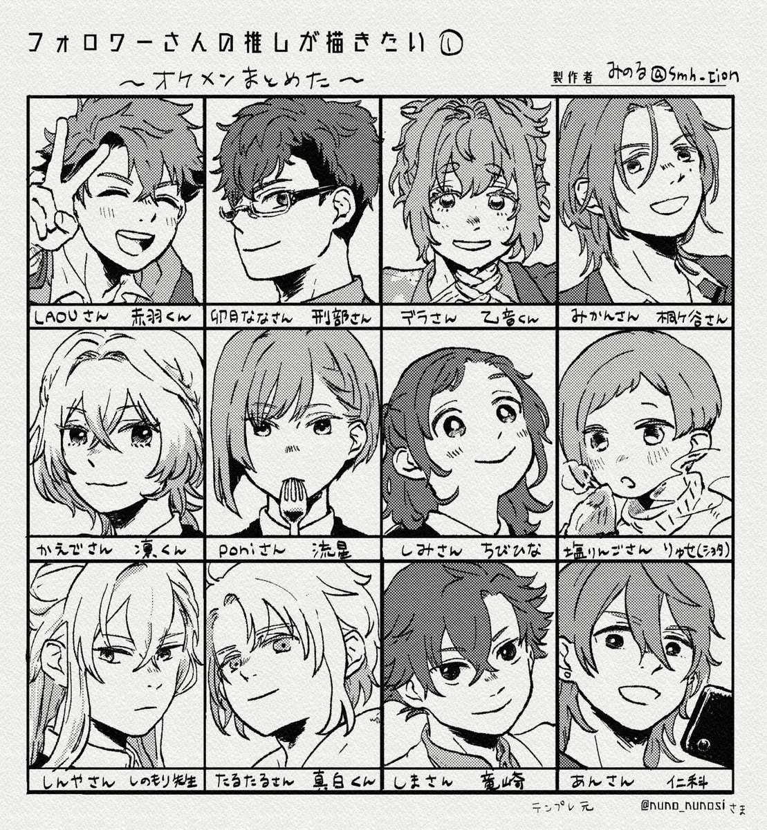 # フォロワーさんの推しが描きたい 第一弾 オケメンたくさんいただいたので、まとめて描きました! ありがとうございました!!