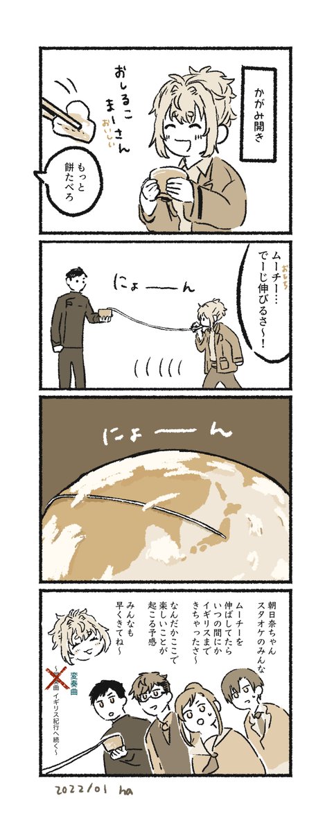 8 42 昨年のイギリス変奏曲の予告が来た時にかいた漫画再上げ(訂正版) ホムボに餅ネタが多いな…と思いながら絡めて描きました 23/01/04 14:45