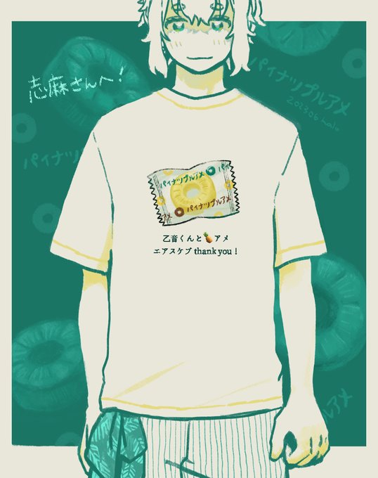 #キミゆい エアスケブリクエスト「乙音くんと🍍アメ」 描かせていただきました!大変おそくなりました…! 類似したメーカー品だな😸Tシャツほしいですね ありがとうございました〜!!🌺 @30o8C