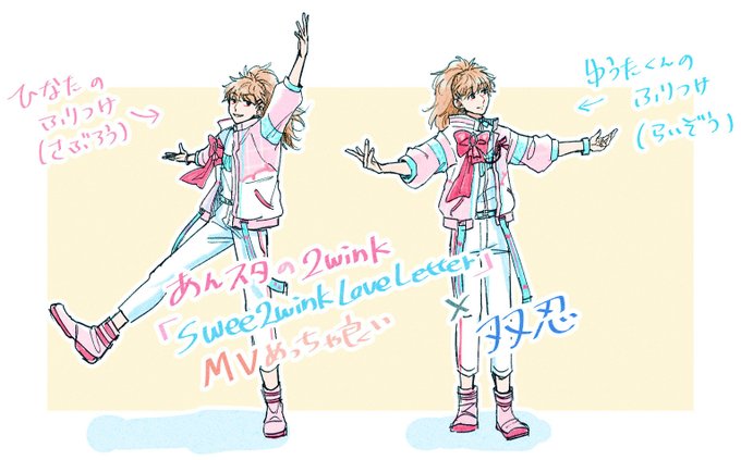 双忍 イベント中ずっと叩いてて最高だなって思ったあnすたの双子MV振付をやって欲しかったので自分のために描きました。あまりにも神曲。