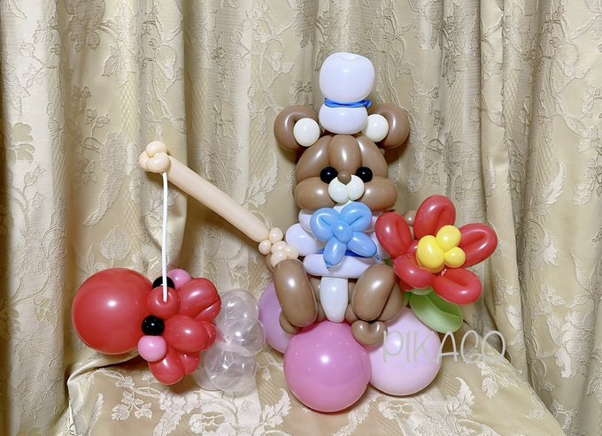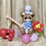 船乗りくまむーも教えてもらえた🥰 予習〜本番〜復習 しても思った形が作れない この子は私の永遠のテーマかもしれない🧸 南国🏝でタコを釣るくまむー 顔が無表情に🙃 タ、、タコ🤣 かわいい🐙 #バルーンアート #くまむー #風船使いたけむぅ~ @AmuseFactory