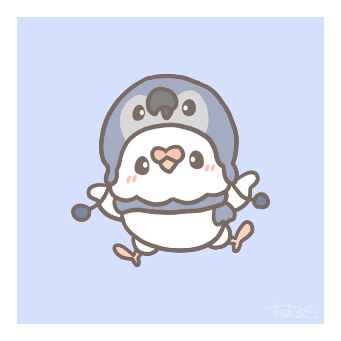 だんだん寒くなってきましたね🥶 ペンギンさんの帽子かぶってます🐧🤍 🦜「体調には気をつけてね〜❕」 #インコ #イラスト