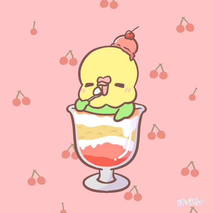 4 53 パフェ美味しいね〜🍨🍒 #インコ #イラスト 23/03/21 18:10