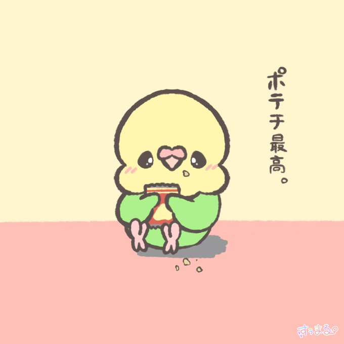 お菓子を食べる手が止まりません.... 痩せます....🏃♀️💨 #セキセイインコ #イラスト