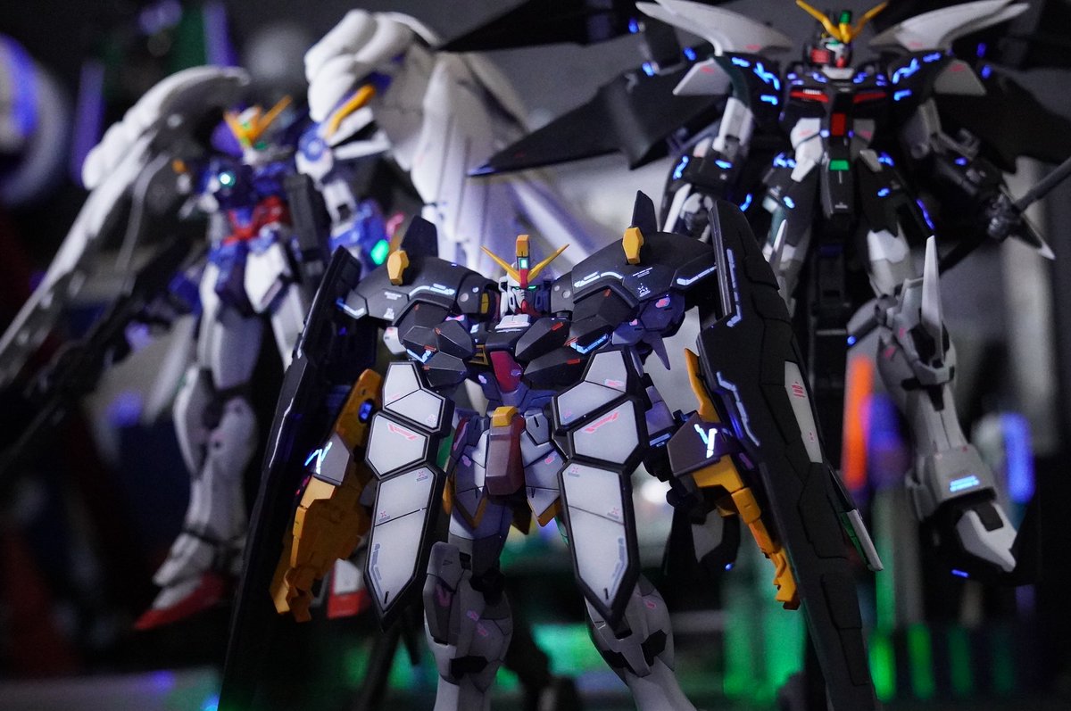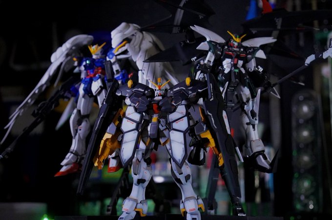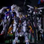 サンドロック アーマディロ装備 塗装完了。 ウィングガンダムとデスサイズヘルと一緒にパシャリ📸 #ガンプラ #ガンプラの画像を貼るとRTされると聞いて #ガンプラ好きとつながりたい #ガンダムW #サンドロック #デスサイズヘル #ウイングガンダムゼロEW #アーマディロ装備