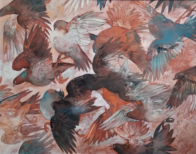 36 316 彼女の香水(2022) 絢の会にて展示予定です。 #art #日本画 #鳩 #鳥 22/11/30 17:00
