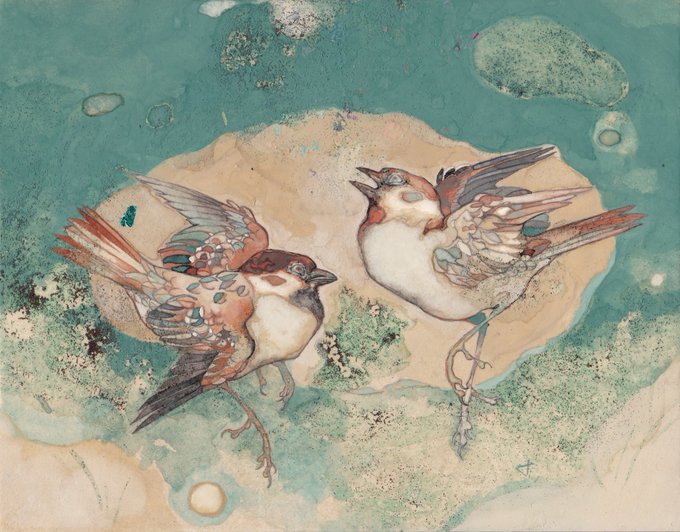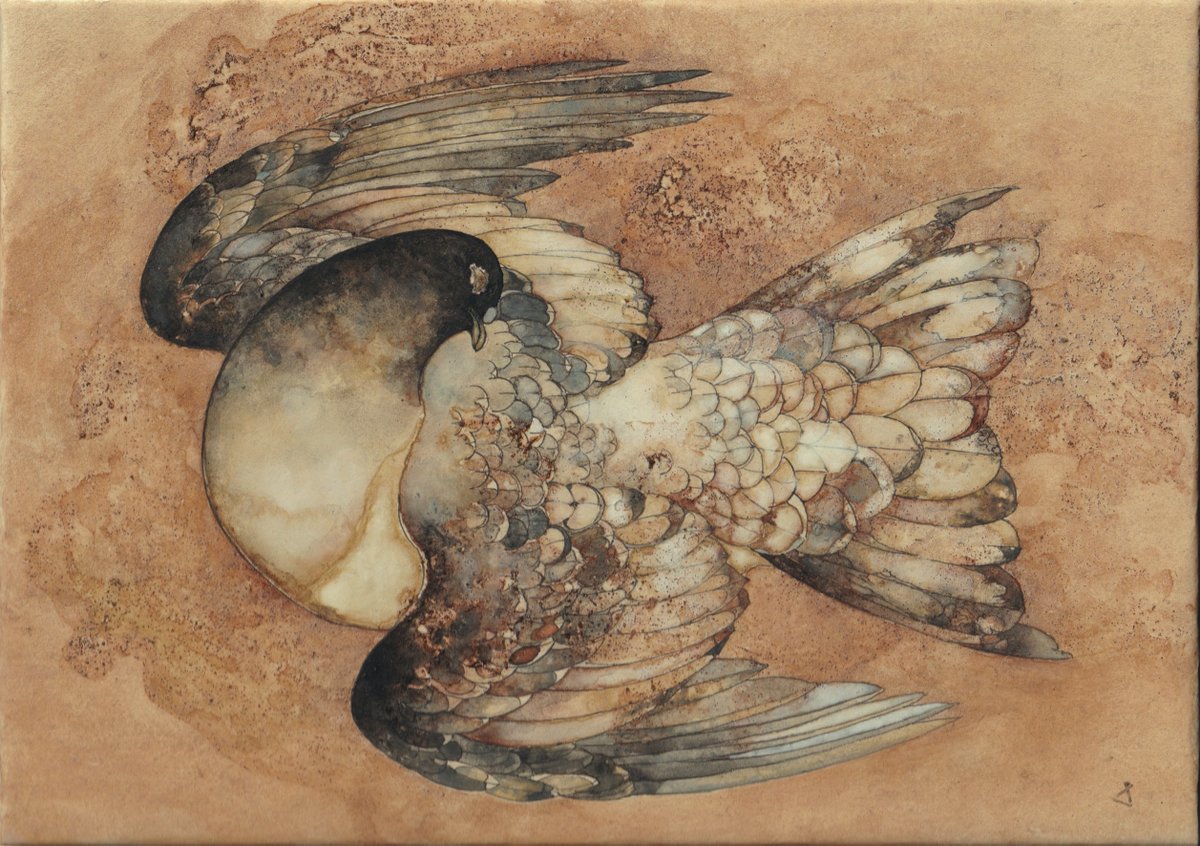 75 569 古書店の天使(A,B)(2022) #art #日本画 #鳩 #鳥 22/12/24 04:00