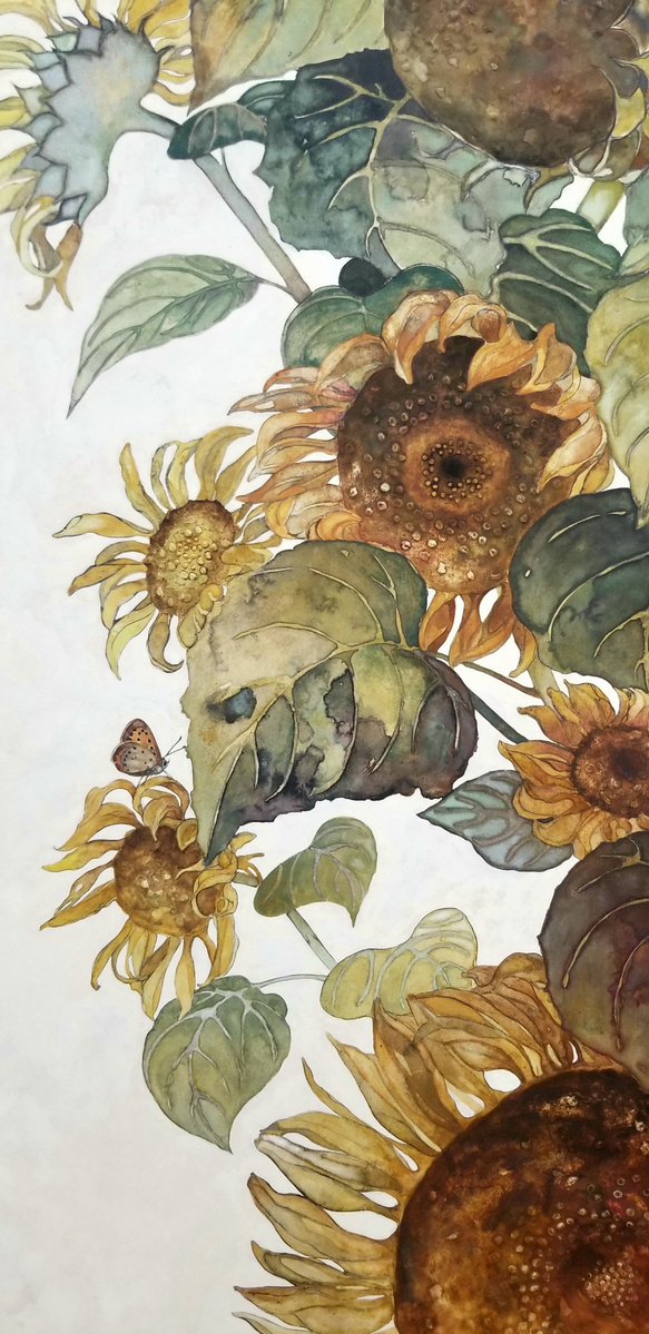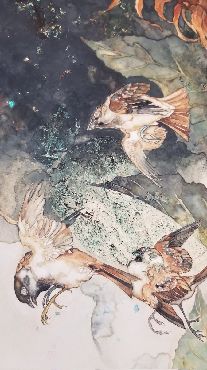 夏を追う(2022) 7/11~7/16の個展にて展示予定です。 #日本画 #絵画 #art #向日葵 #雀