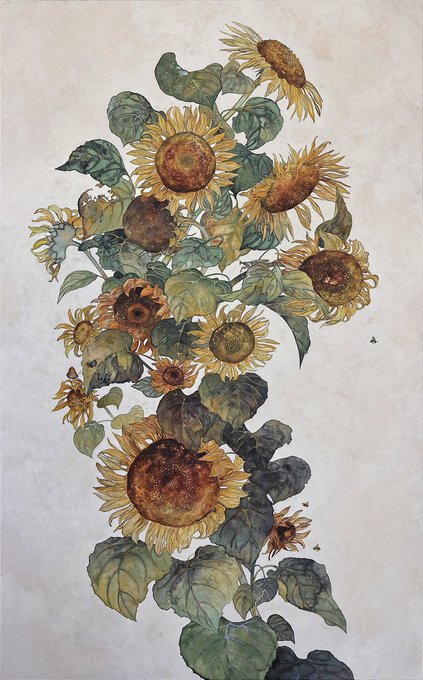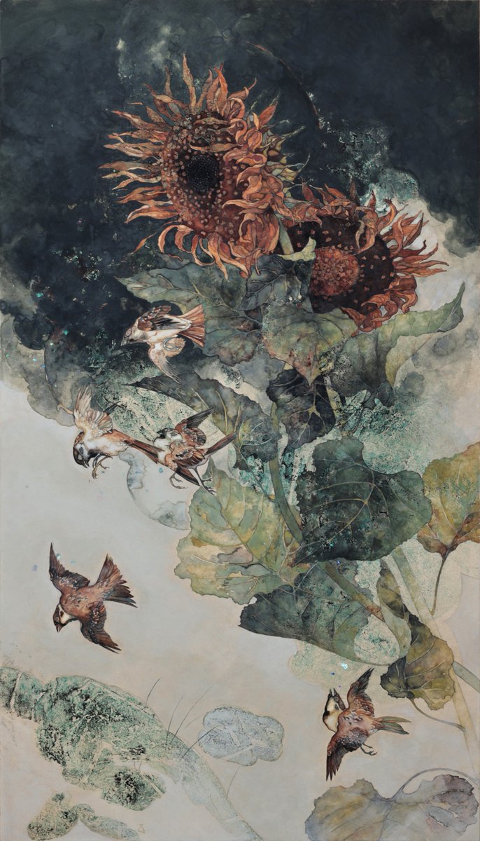 121 1139 夏を追う(2022) 7/11~7/16の個展にて展示予定です。 #日本画 #絵画 #art #向日葵 #雀 22/06/08 19:00