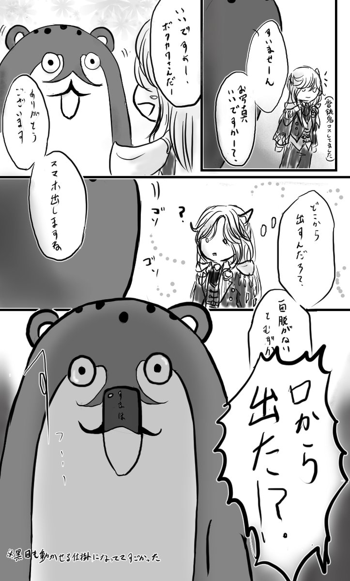 2023/02/19開催の艦隊名古屋4のコスプレゾーンにて出会った口からスマホを出すボクカワウソレイヤーさん。 衝撃的過ぎて詳細?描かなきゃってなりました twitter.com/smo_toko/statu…