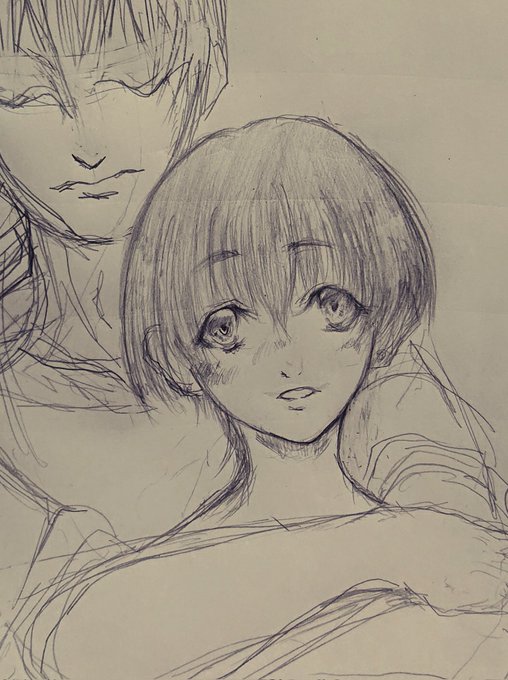 8 44 #今日の落書き へっ…そんな心配そうな顔するなよ… お前は昔から心配性だよな… 23/06/27 22:24