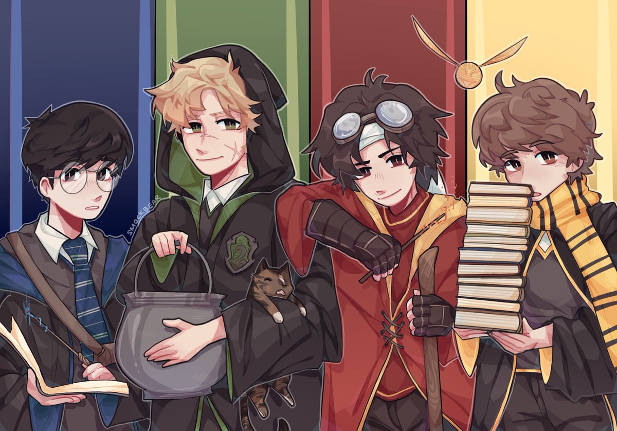 Dream Team Hogwarts AU !! 💙💚❤️💛 (no reposts) #dreamteamfanart #georgenotfoundfanart #sapnapfanart #karljacobsfanart #dreamfanart #mcytfanart