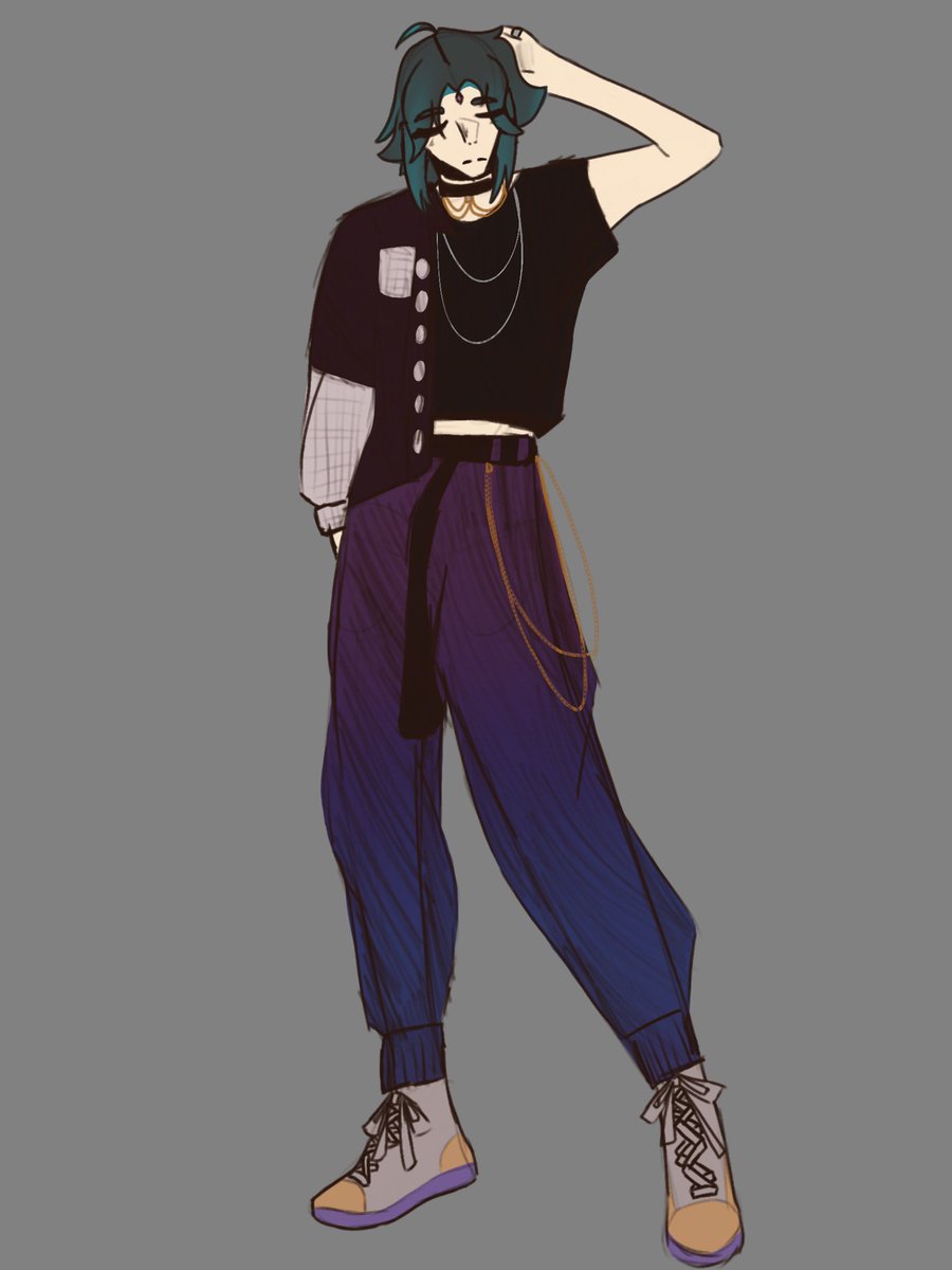 Just a little sketch of the collage au/ modern au Xiao :) #sketch #digitalart #Genshin #genshinimpactfanart #xiao