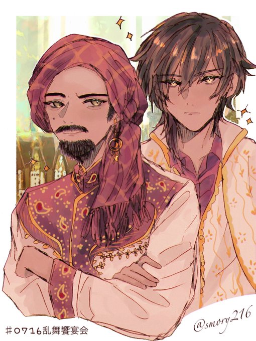 38 130 #0716船上饗宴会 石油王審神者さんと大倶利伽羅さんがあまりにも〝 良〟すぎてファンアートを描かせて頂きました👳🏾🍛✨️ 23/07/20 01:05
