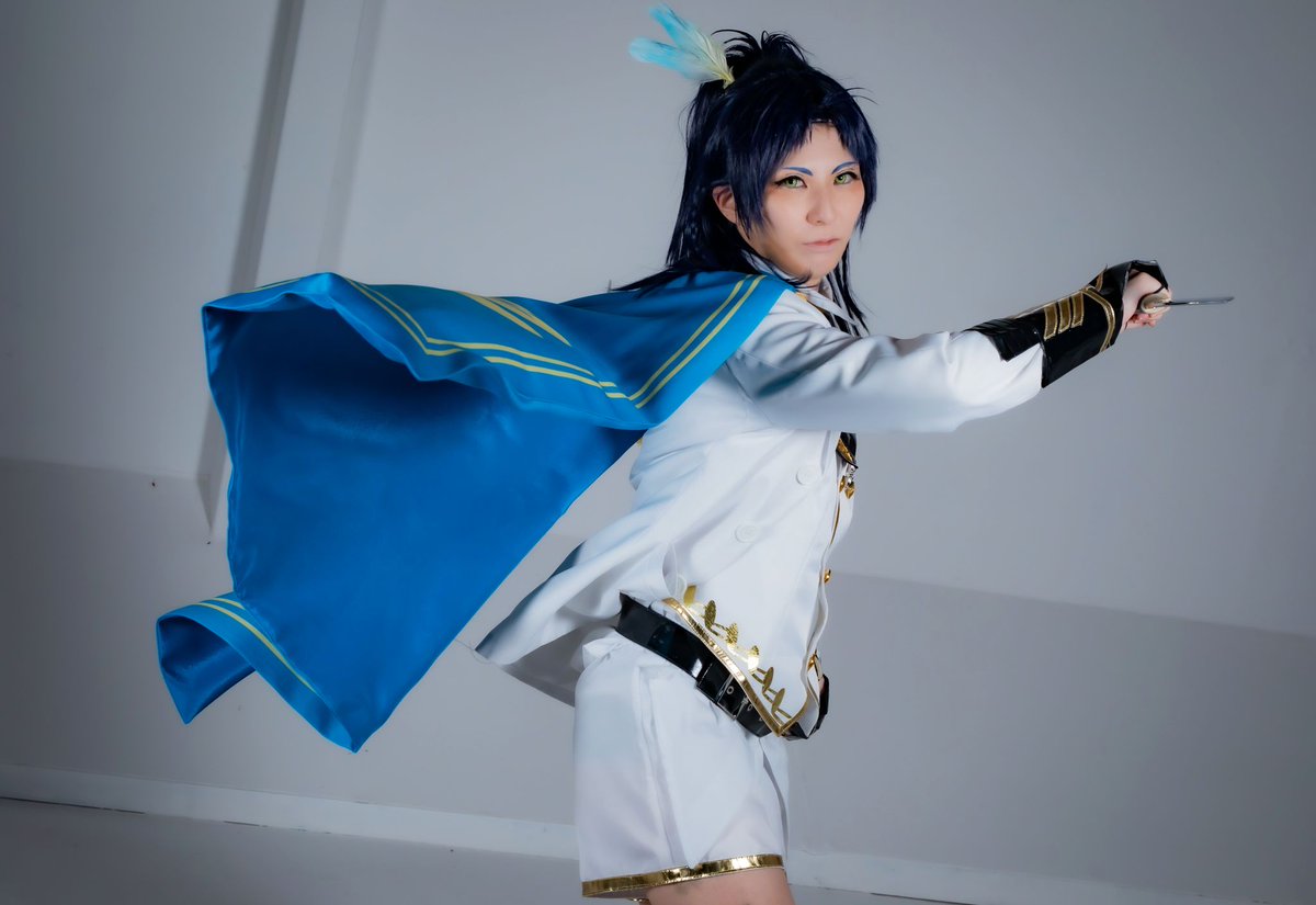 4 20 【cos / とうらぶ / 太鼓鐘貞宗】 これは刀を持ってる方の手でマントを掴みながら一回転し、なんかいい所で手を離して作るセルフひらみ✧ photo:@melty01374 studio:@happinyass 20/11/19 20:04