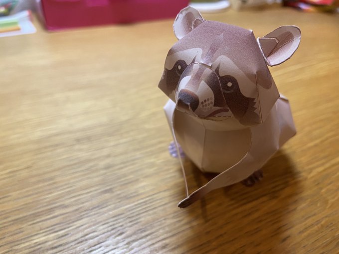 7 55 〜ペーパークラフト〜 アライグマを作ってみた!🦝 三枚目、リスと共に2ショット🐿❤️🦝 #ペーパークラフト 20/06/03 21:14
