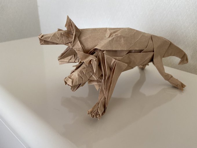 ケルベロスをボックスに入れるべきかそのままの方がいいのか、、🤔🤔 飾りセンスが欲しい、、 #折り紙 #ペーパークラフト #装飾