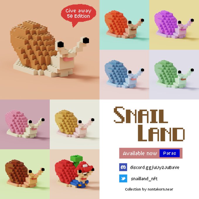 NFT Snail Land New Drop in Paras !💗✨ Time: 10/08/22 12:00 PM (GMT+7) Paras: paras.id/nontakorn.near… Discord: discord.com/invite/Wyu6KrP… #NFTCommmunity #Paras #NFTTHAILAND #NFT #NFTdrops #NFT宣伝枠 #nftcollectors #SnailLand #NEAR #NFTMarketplace #voxelart #nftcollector #nftarti̇st