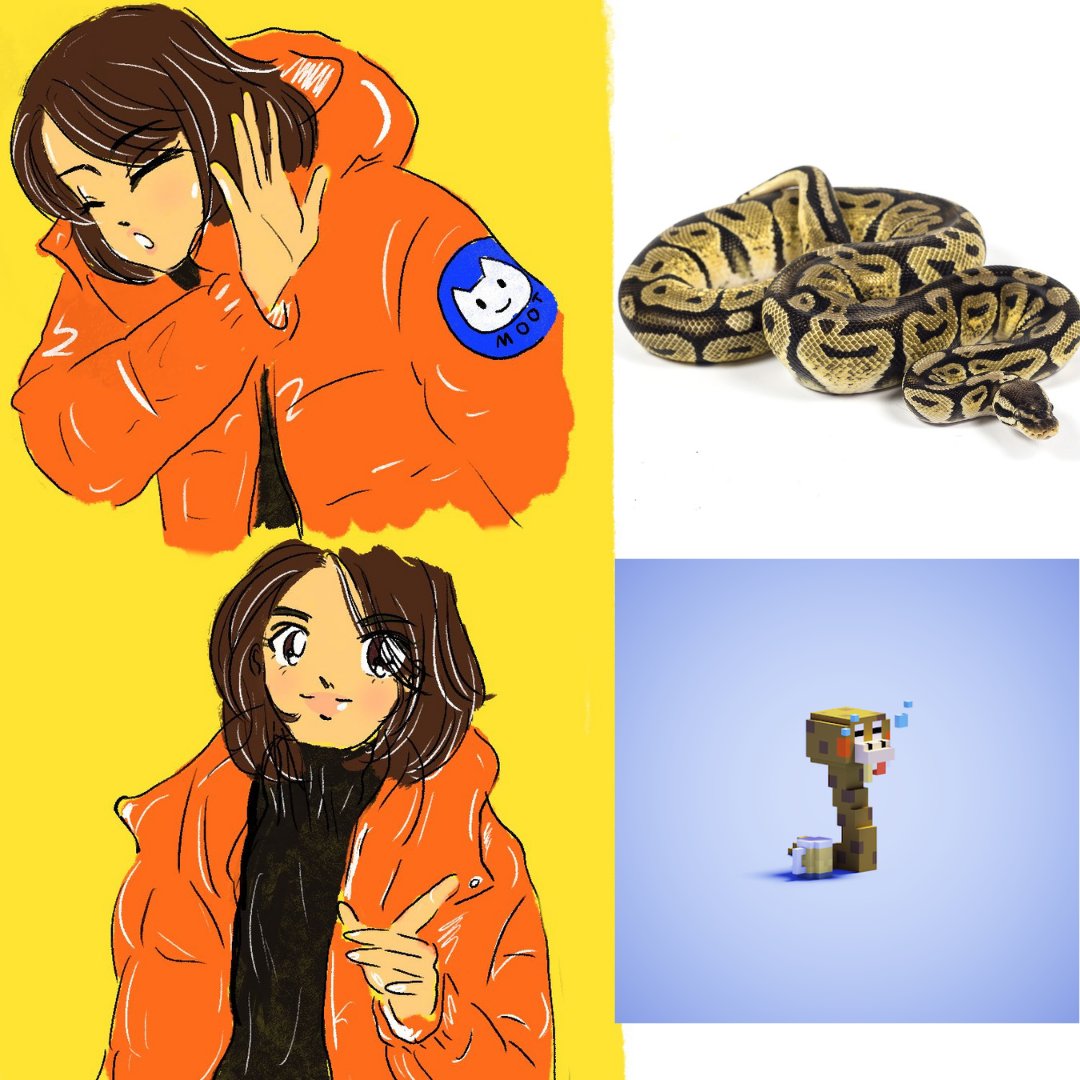 5 18 Both are Python but my collection are cuter 🐍Snake Voxel🥰 opensea.io/collection/sna… 🙏🏼Thank meme template from @Yishreah 😍 #MEMES #NFTCommunity #NFTcollection #polygonNFT #voxelart 21/12/14 12:15