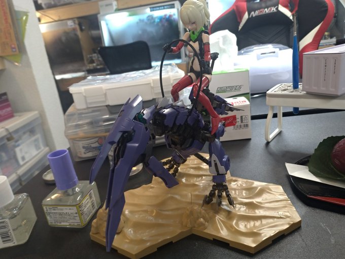 台が欲しくて回したら2回で来た、ラッキー。と言うわけでこのまま出そう。 ほぼパチ組みですが、肌色の箇所だけあわせ目消してます。 メガミやとサイズ感合わんな…。 #うみんちゅ杯プチ6 #メガミデバイス