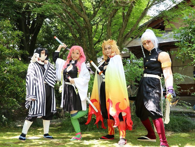 cosplay 鬼滅の刃 悪鬼滅殺 💎@狐龍ちゃん 🔥 @ouji_sun 🍡 @iori1209_anicos 🐍 @snicopon2016 photo @s_bw5u 身長差とか雰囲気とか、トータルで私は良すぎて泣いてる、、完璧じゃん、、、、() #コスメルin京都市国際交流会館 #コスメル