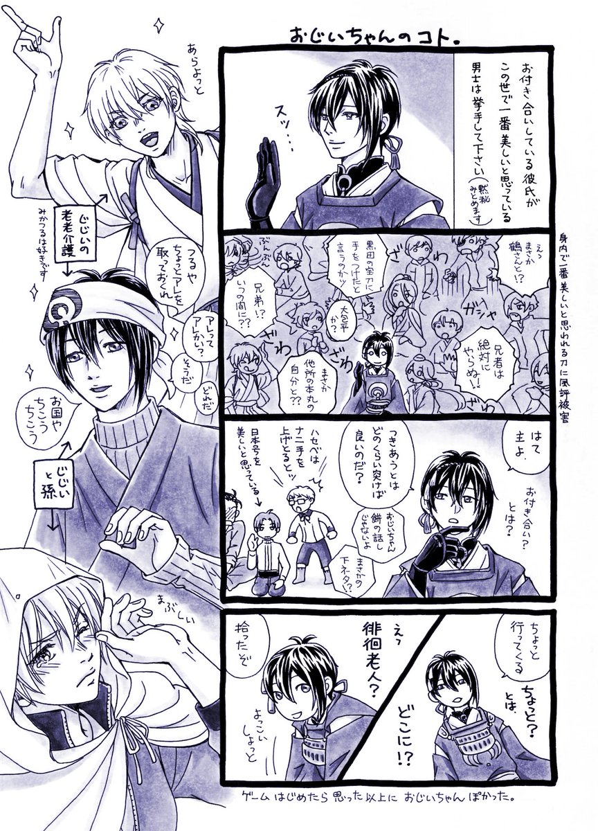 15 63 弊本丸の事4。突然ですが三日月宗近さん、映画でホントにお爺ちゃんぽいんだーと思ったけどゲームはじめたら本当におじいちゃんぽかった。ウチの事はさておき、刀ステはみかんばと思って見てる 21/03/25 22:35