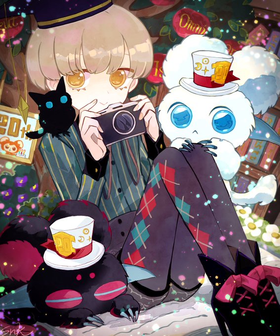 #リヴリー20周年 #リヴリーファンアート 20周年おめでとうございますー!!🎉🎉🎉 うちのホムさんとリヴリーたちを描きました🥰ツノリムル大好きで白黒コンビを愛でています……本に囲まれるツノリムル尊い……🙏✨