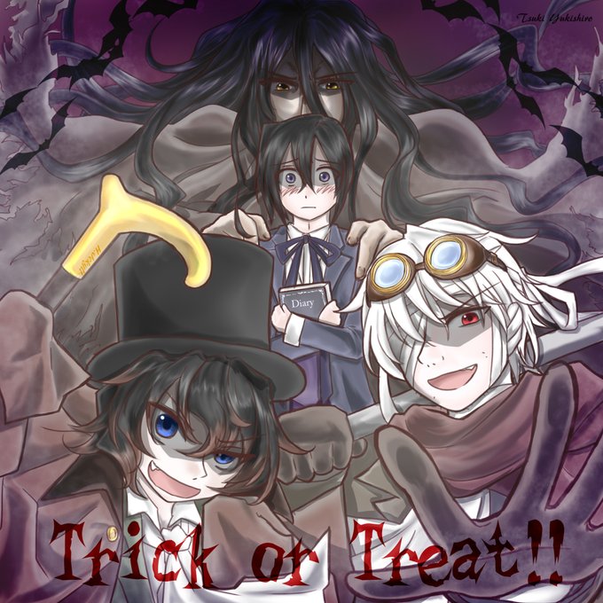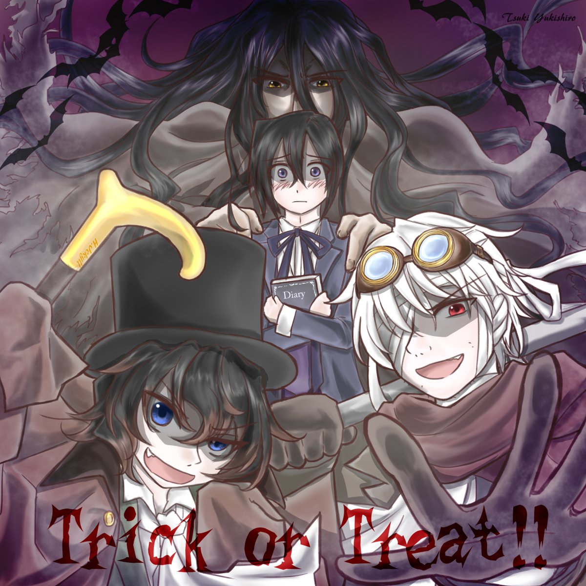やっと色塗り終わりました! 拙宅文学創作の子たちをハロウィン絵にしたけど全員普段着で通常運転。 ヴィクターくん引いてる。 #ハロウィン #ハロウィンイラスト #ハロウィンイラスト展示会2021 #ハロウィン2021