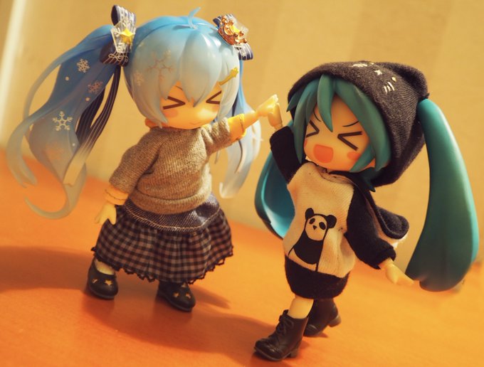 #深夜のねんどろ撮影60分一本勝負 6/7【にてる】 #深夜の初音ミク撮影60分一本勝負 6/7のお題【くらべる】(既出) よく似てるけどちゃんと見比べると違います… え?顔は同じ?なんのことですか?