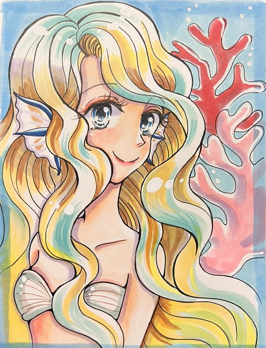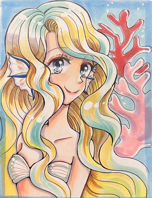 0 4 マリンなマーメイドのイラスト描きました! #コピック #イラスト #お絵描き #人魚 #マーメイド 22/04/22 23:02