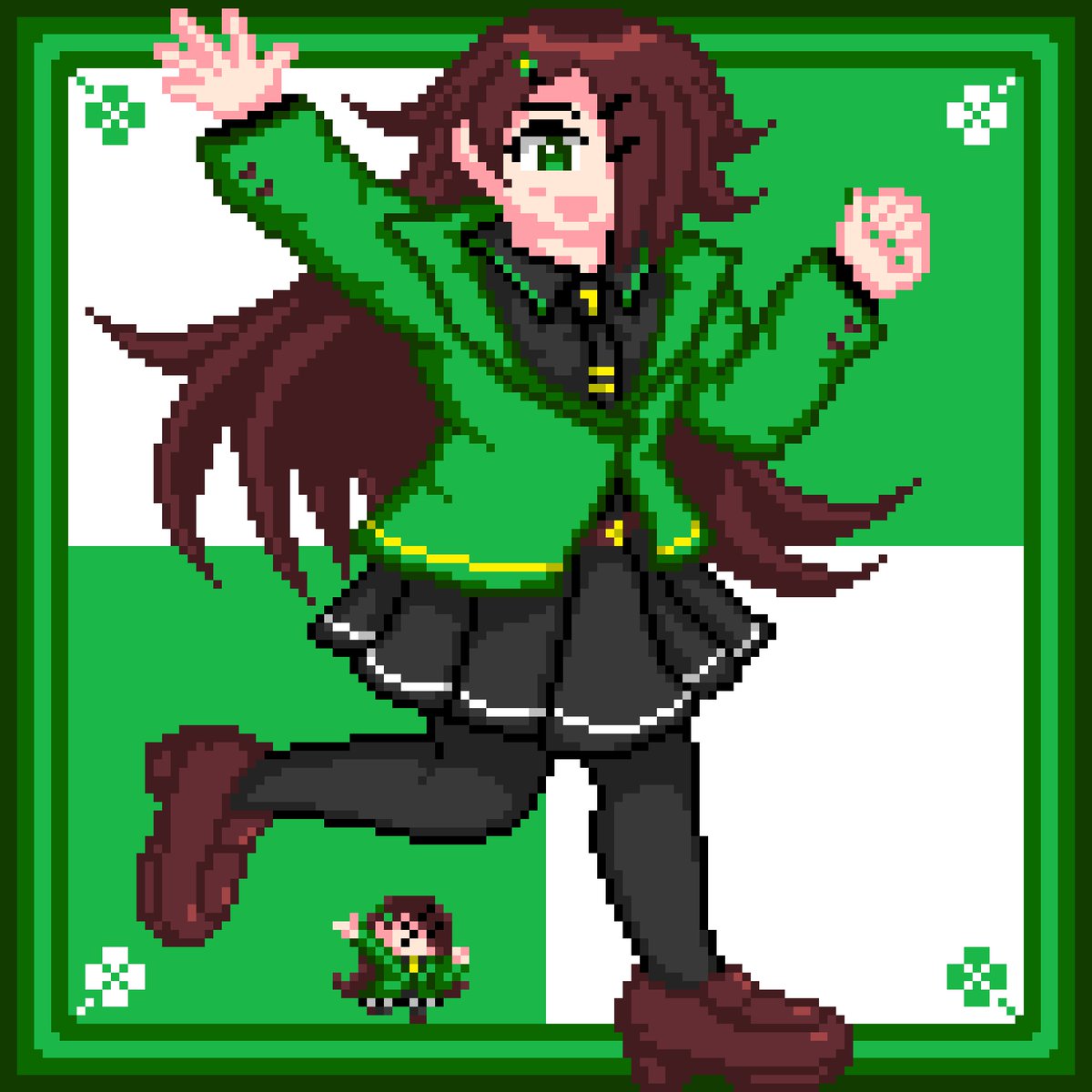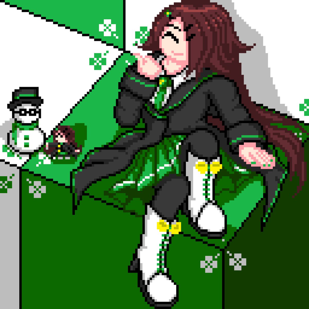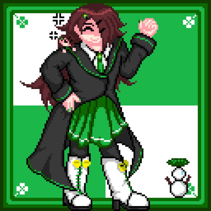 今日のりるちゃん ちっちゃいりるちゃんが四葉のクローバーを拾ってきた。 「りぃちゃんそれどこから拾ってきたの?」 #ドット絵 #dotpict #pixelart