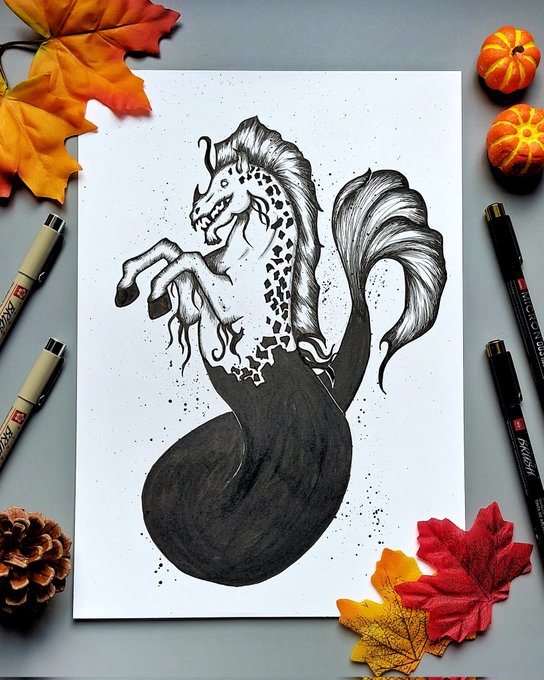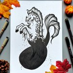 My first drawing of this year's Snowtober; the Kelpie ✨️ I use my own prompt list. Today's drawing will be posted later. #inktober22 #Inktober #drawing #snowtober22