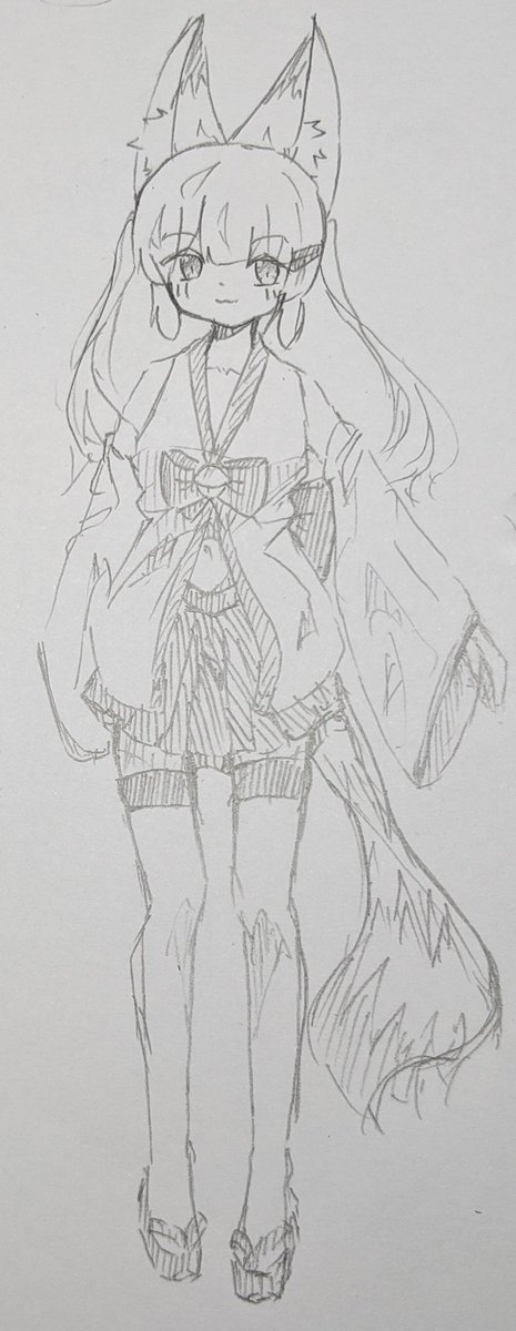 #けもみみおーこく 前の落書きに色をつけてみた 写真だと上手く色でないな...