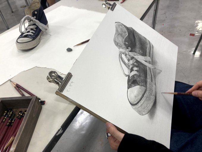 靴デッサンのデモストしました。 B3サイズ画用紙 5時間