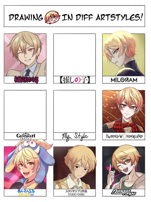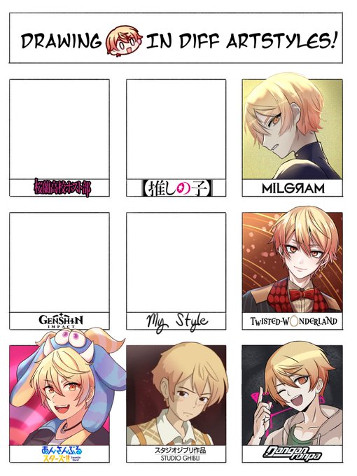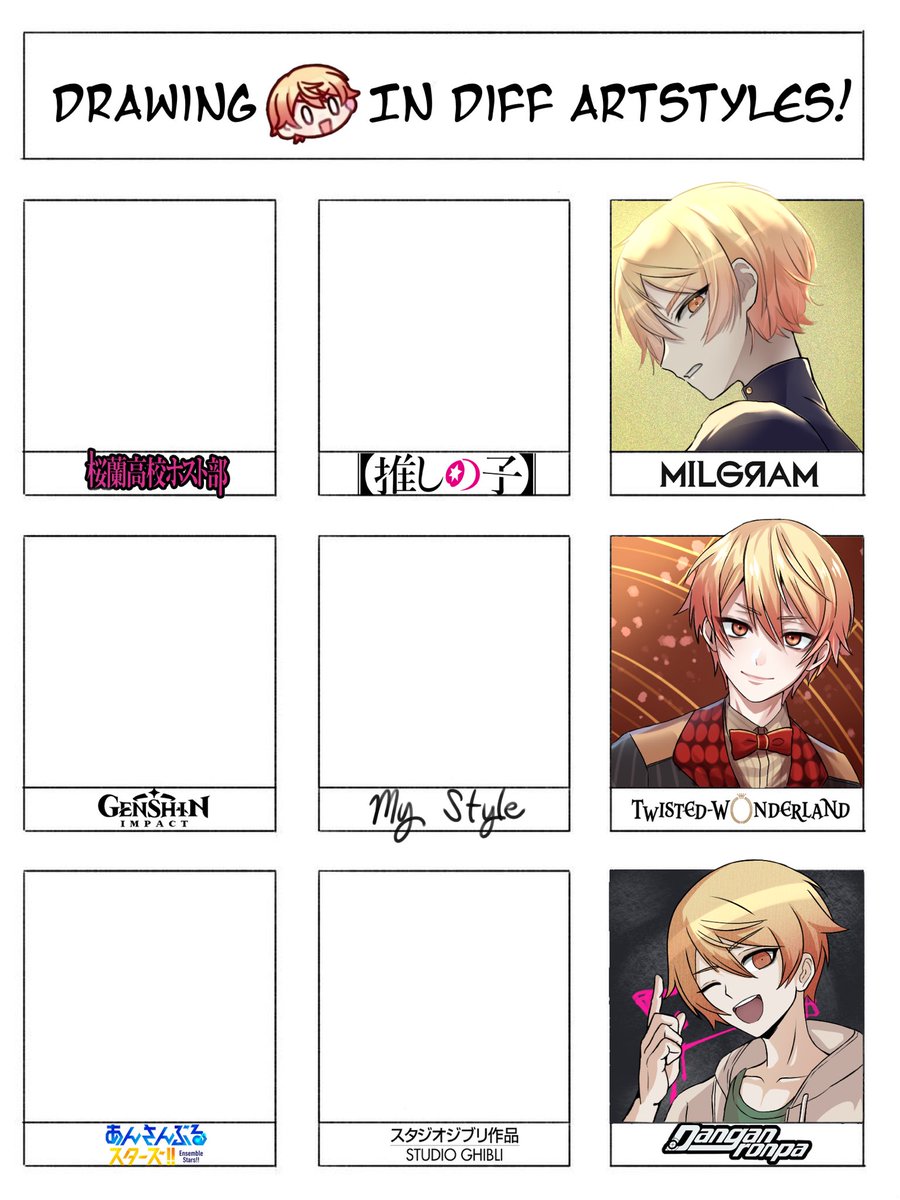 339 2235 Drawing Tsukasa in different artstyles day 4/9 Enstars ! #prsk_FA #EnsembleStars 23/07/15 15:37
