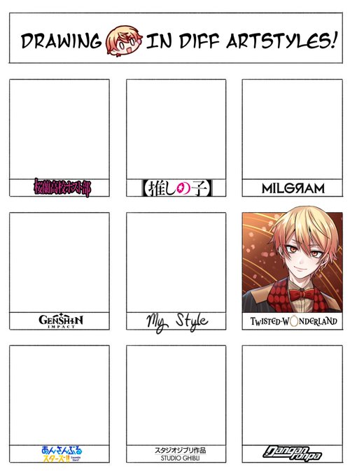 291 2380 Drawing Tsukasa in different artstyles day 1/9 twsited wonderland #prsk_FA 23/07/12 17:34
