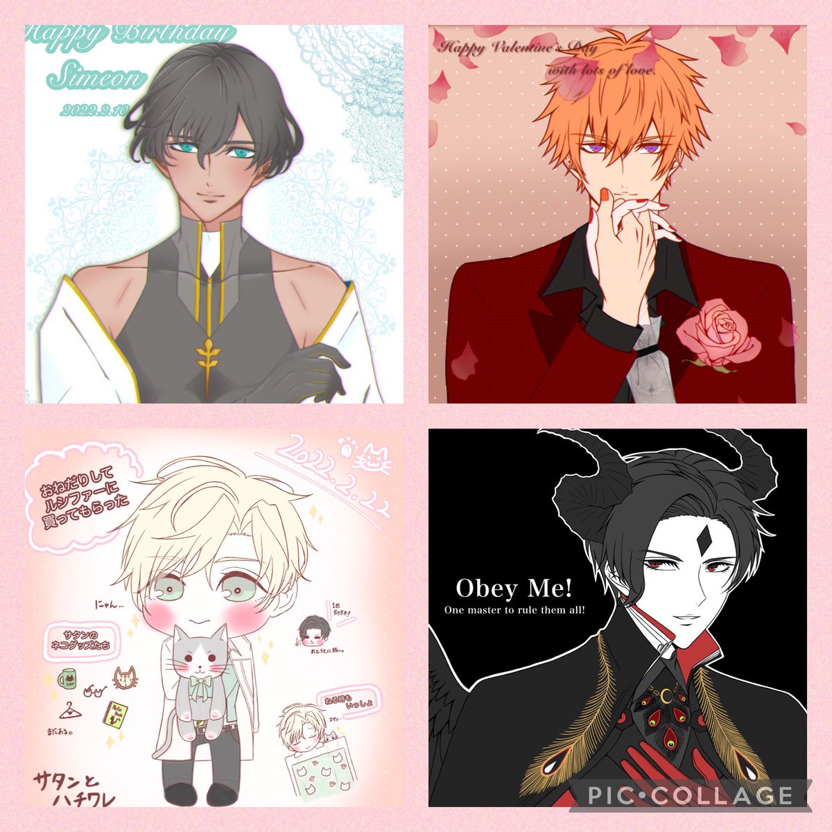 バレンタイン衣装×眼鏡のサタンが見たくて描いた落書きをちゃんと仕上げてみました🙌 4枚あるけど違いは眼鏡だけです!😂😂 #obeyme #obeymefanart #obeymesatan