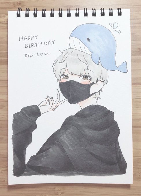 まどくん Happy birthday🎂🤍 替え歌やオリ曲、続きを考えてみたシリーズなどどれも素敵で大好きです! これからも応援してます🐳♡ #まどくん #イラスト