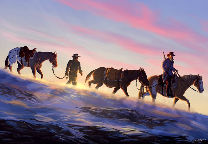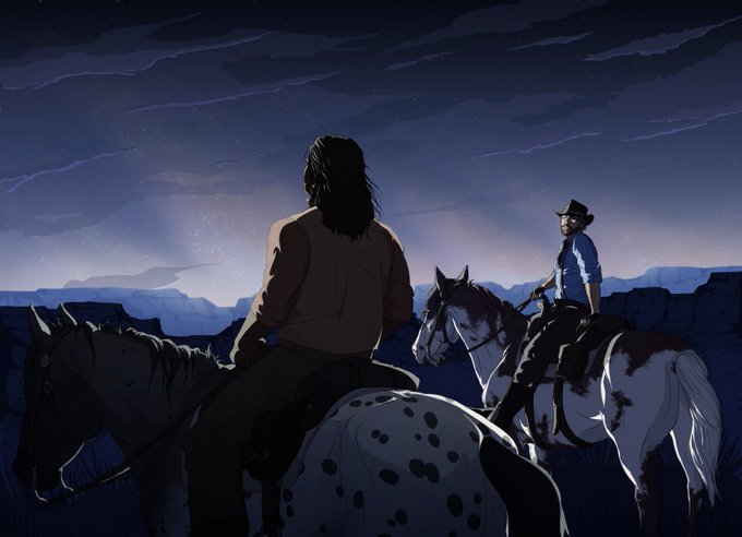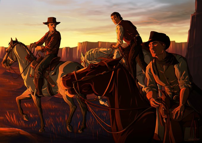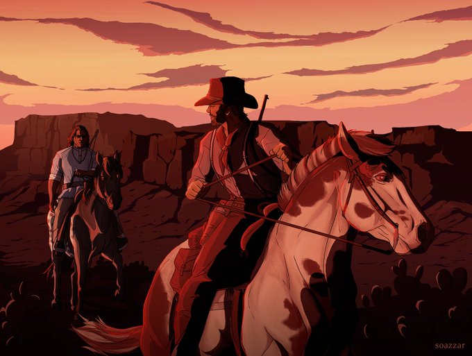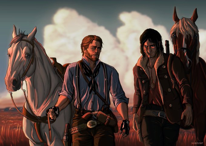 The curious couple and their unruly son🤠 #rdr2 #arthurmorgan #hoseamatthews #dutchvanderlinde #fanart