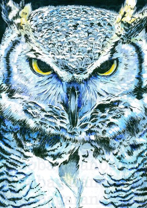 こちら新作です #透明水彩 #ペン画 #アメリカワシミミズク