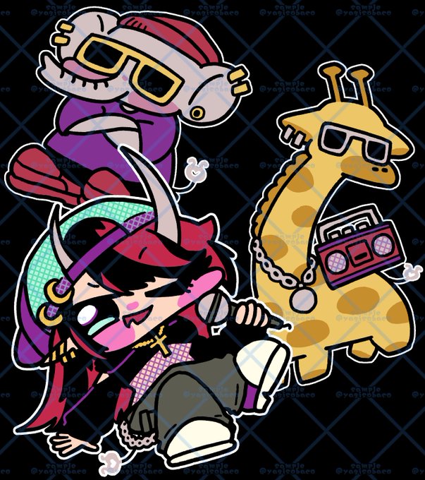 遅くなりました! こちらのフラスタに参加させて頂きました🐙🦒 下に湧いてるのは、さすがにコレはふざけすぎたかなとボツにしたやつです #シクナイライブ #くりすちゃんArt #RART twitter.com/shishio_kikaku…