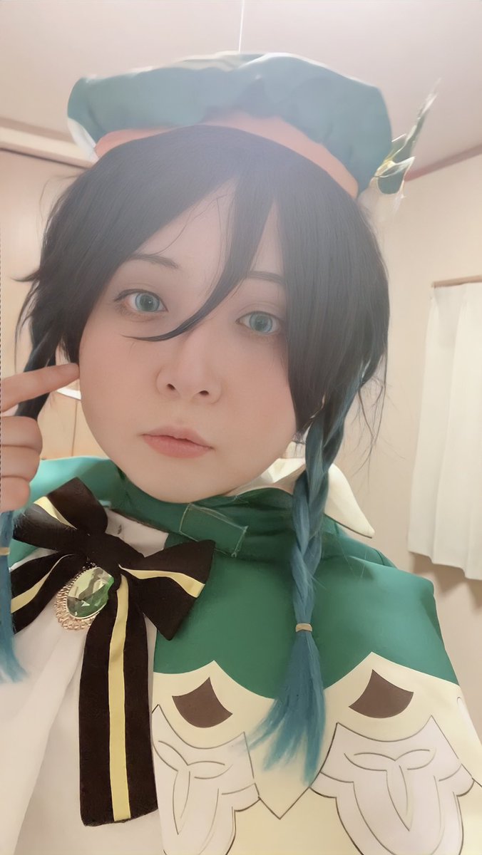 0 9 原神/ウェンティ コスプレ 2回目やってみました! 眉毛を描いてみたけど! 太く書きすぎて! 加工しました(*☻-☻*) #cosplay 22/04/05 22:01