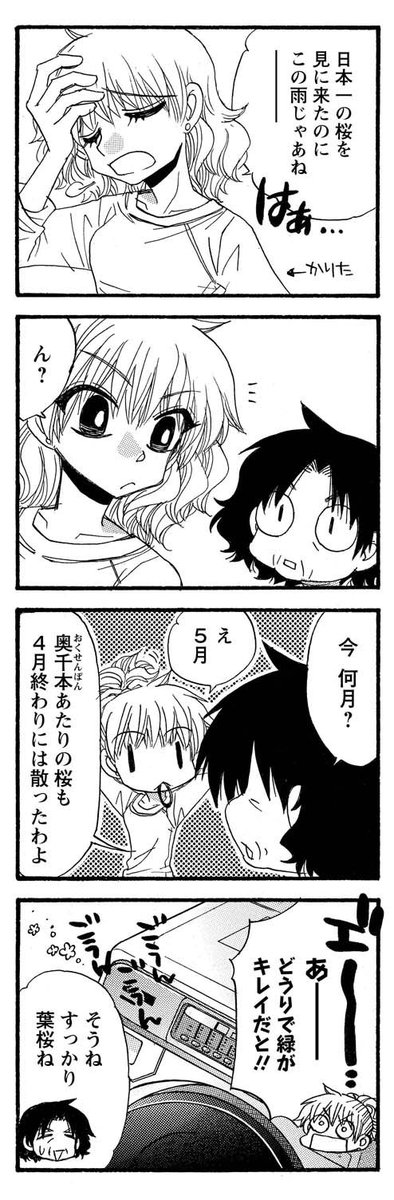主人公のキサが気の向くまま旅して行った先々でお茶するだけの話です。 第一話 奈良の吉野に桜を見に行ったのですが… 【んじゃま、ここらでお茶にしましょうか】4月12日発売♪ (1/4) #漫画が読めるハッシュタグ