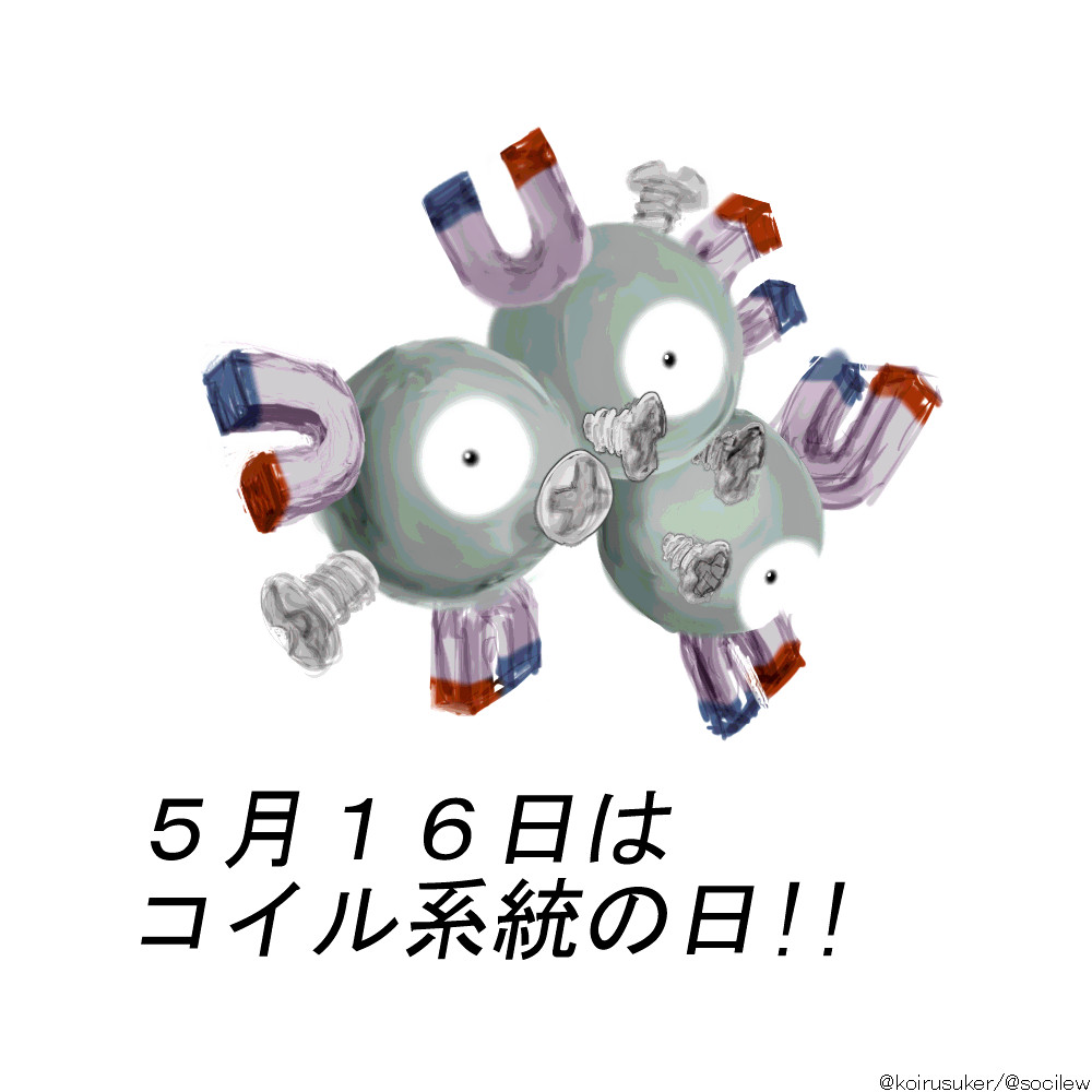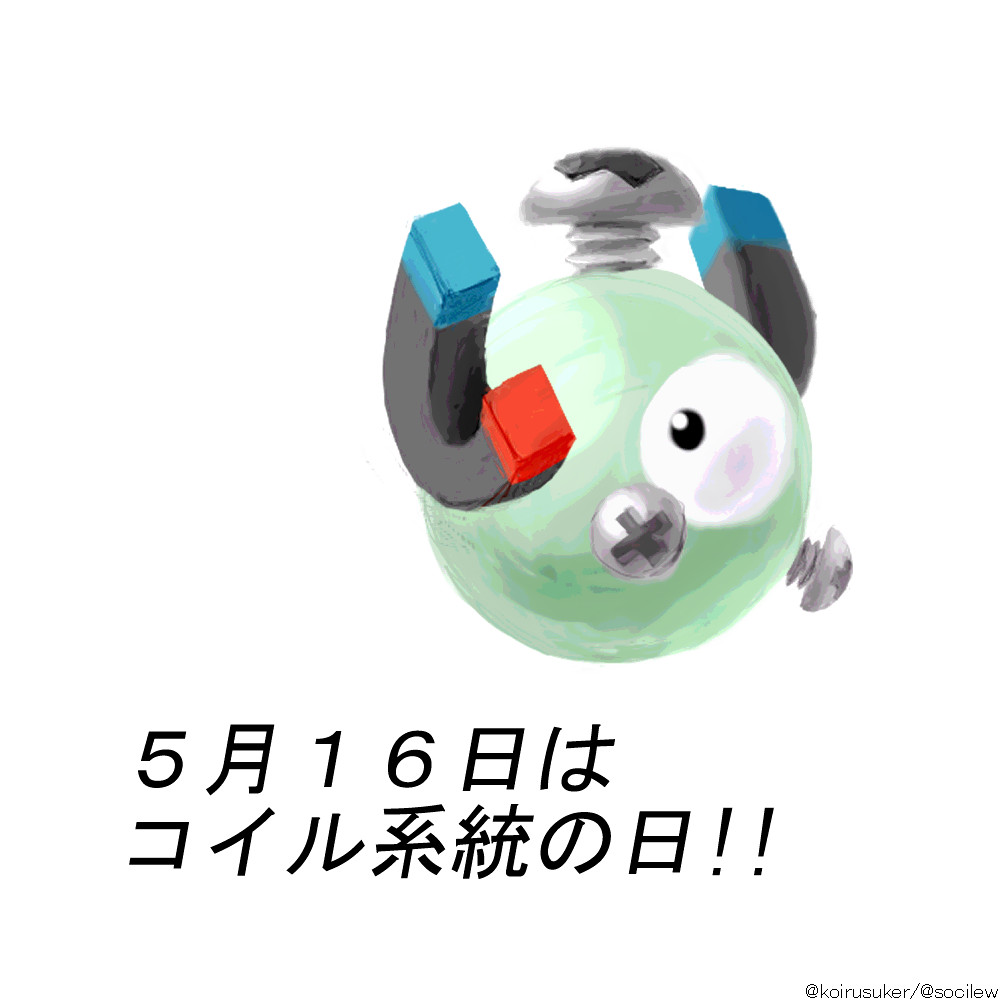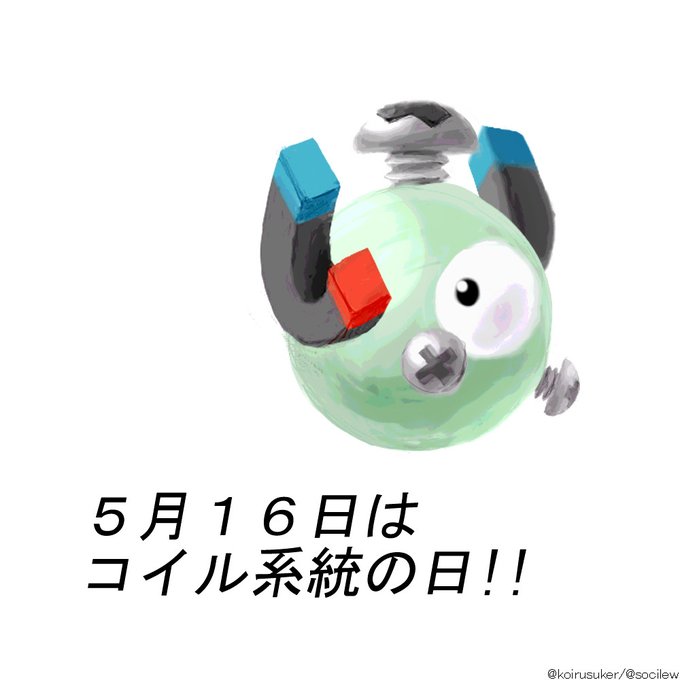 9 30 本日5月16日は、コイルの日!! ということで、コイルを描きました! レアコイルの日やジバコイルの日でもあります。 #コイルの日 #コイル系統の日2021 21/05/16 00:00