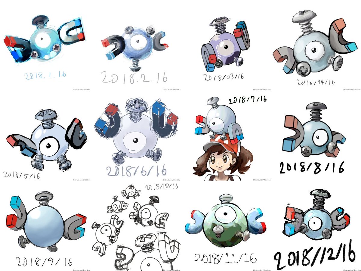 #同じ人が描いたとは思えない絵を貼る 2014年に描いたコイル 2016年に描いたコイル 2018年に毎月描いたコイルまとめ 2019年に大真面目に描いたコイル