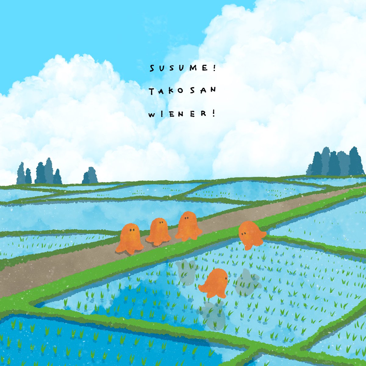 【すすめ!たこさんウインナー/5月】 田植えの季節の田んぼの気持ちよさ。 #イラスト #イラスト好きな人と繋がりたい #絵描きさんと繋がりたい #ゆるいイラスト #絵柄好みって人にフォローされたい #イラストレーター #ゆるい絵 #可愛い