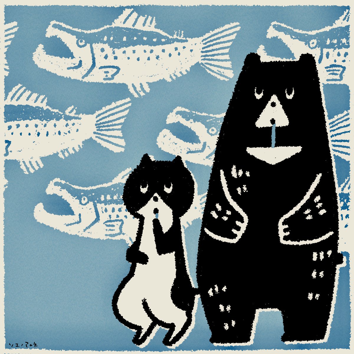 クマさんとネコさんは鮭が食べたい。 #イラスト #イラスト好きな人と繋がりたい #絵描きさんと繋がりたい #ゆるいイラスト #絵柄好みって人にフォローされたい #イラストレーター #ゆるい絵 #可愛い