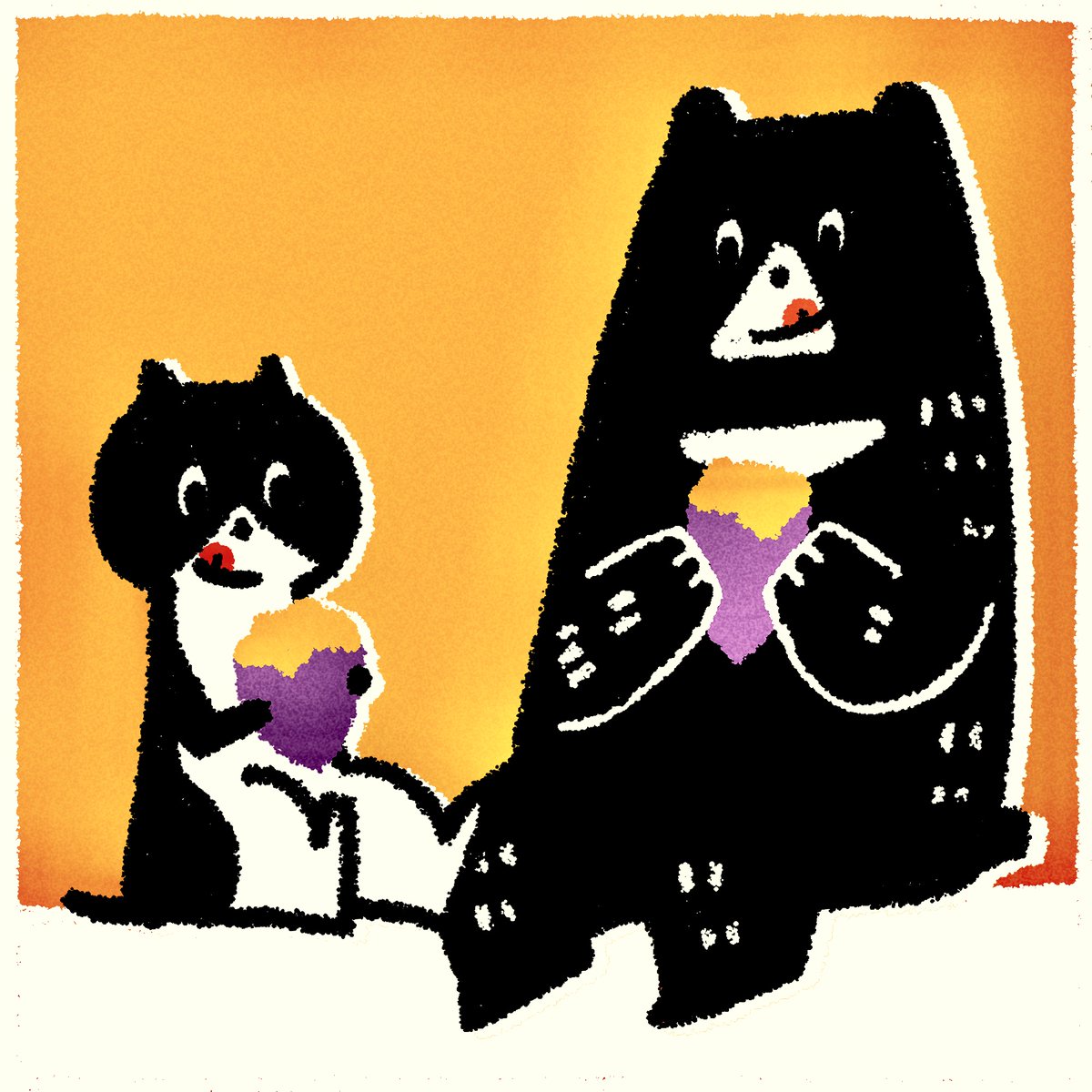 クマさんとネコさん、焼き芋の季節。 #イラスト #イラスト好きな人と繋がりたい #絵描きさんと繋がりたい #ゆるいイラスト #絵柄好みって人にフォローされたい #イラストレーター #ゆるい絵 #可愛い