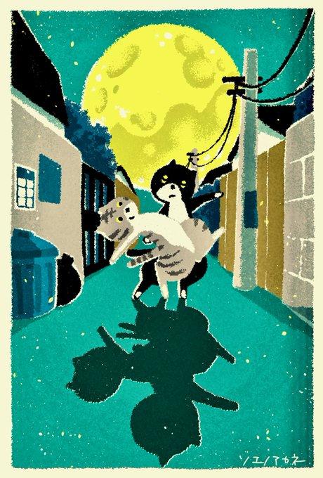 ネコさんたち真夜中のダンス。 クールにキメます。 #イラスト #イラスト好きな人と繋がりたい #絵描きさんと繋がりたい #ゆるいイラスト #絵柄好みって人にフォローされたい #イラストレーター #ゆるい絵 #可愛い #猫